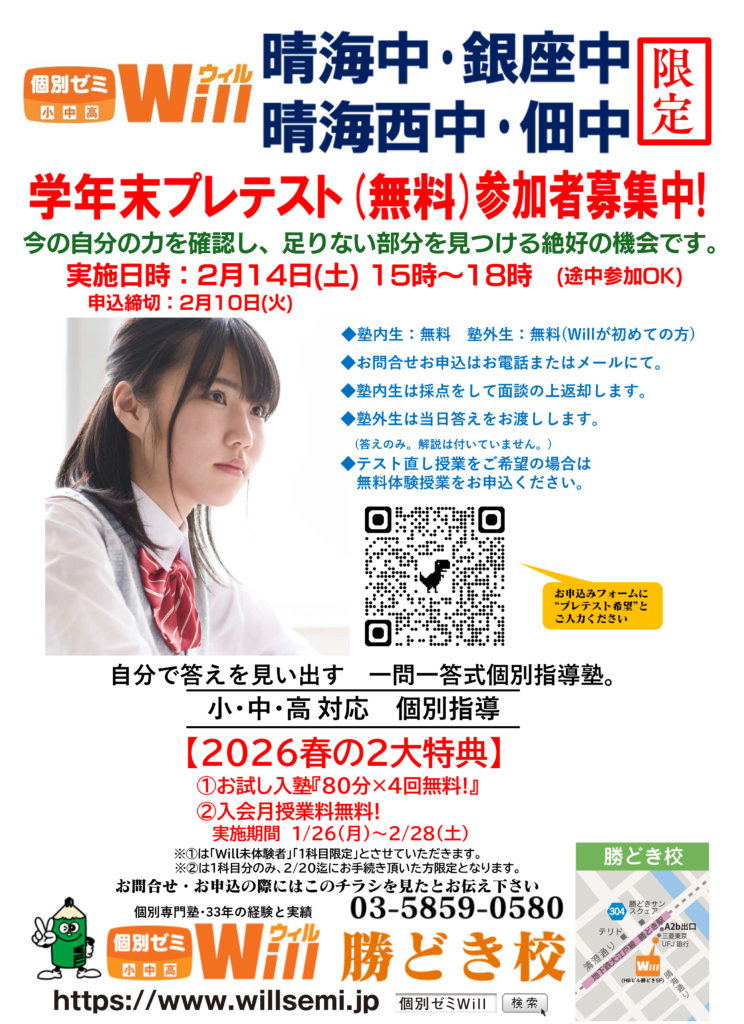 勝どき 学年末プレテスト開催!